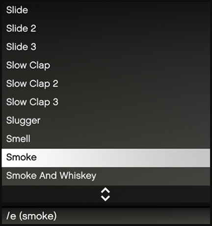 To find the name of the emote you want to add to the keybind, open the emote menu by pressing the ‘F4’ key. The emote for smoke would be /e smoke. The name in brackets is what you add to the keybind command. e wave e smoke e clipoard |