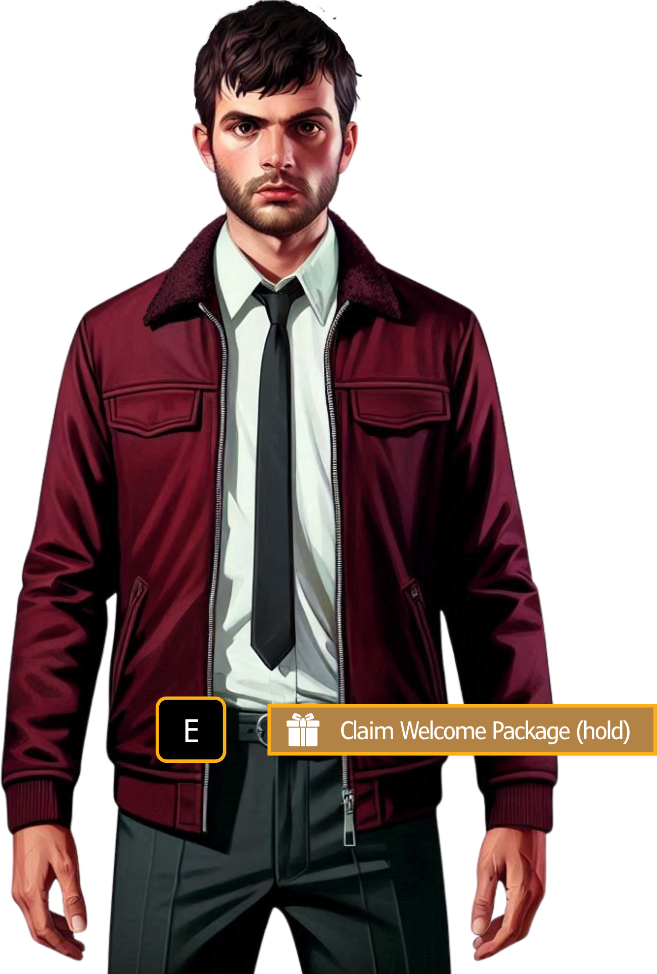 CLAIMING YOUR WELCOME PACK - To claim your free Welcome Pack - Talk to the ‘local’ gentleman wearing the dark red jacket. He can be found at number 4 Alta Street. To the left of the door as you enter the building. Walk up to him, and when the interact prompt appears, hold your ‘E’ key. If no interaction prompt appears, hit ‘Alt’ on your keyboard to toggle visibility. ![]()